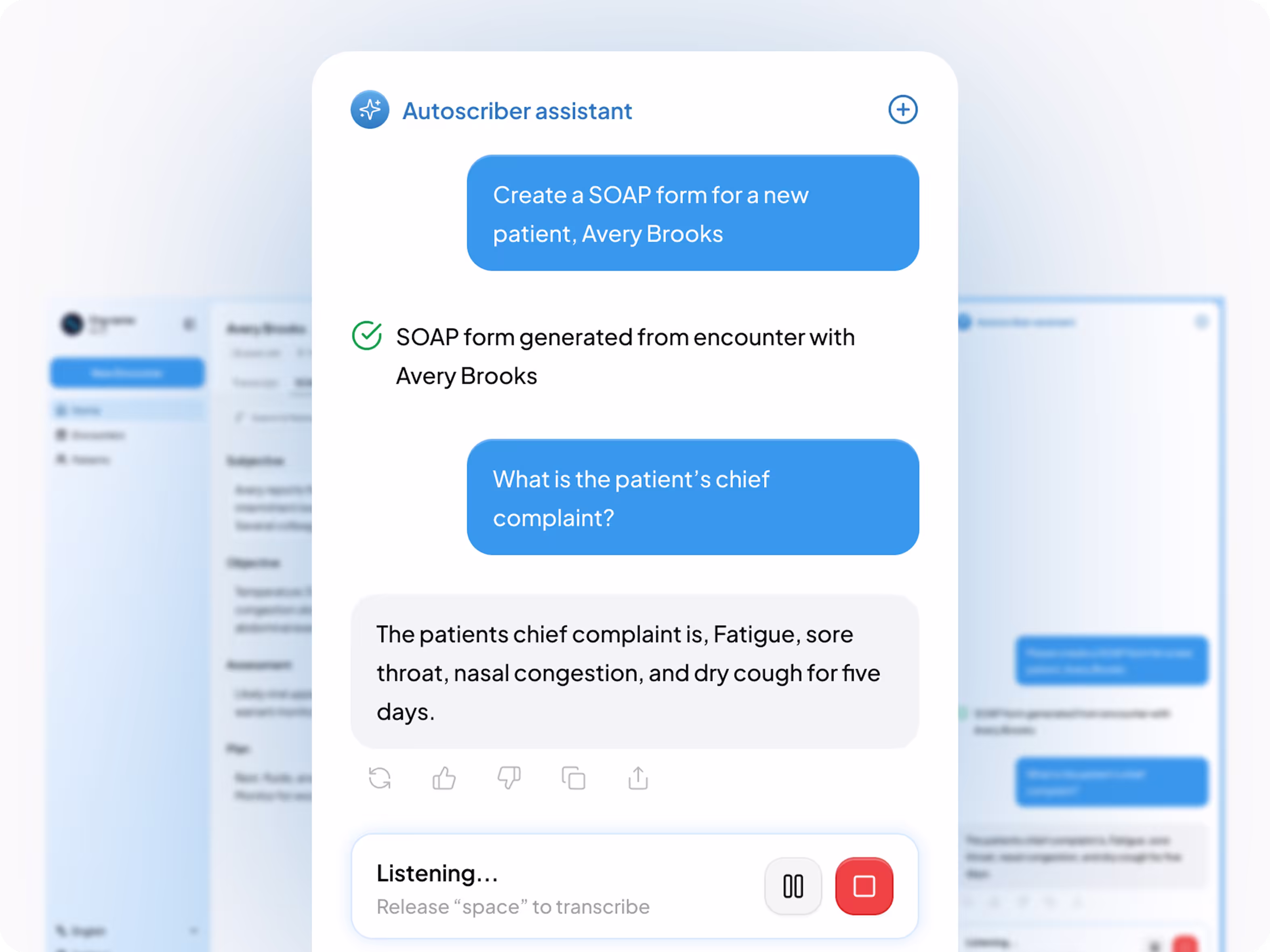 Wees een van de eersten die Autoscriber 2.0 uitprobeert. Ontwikkeld rond jouw workflow om tijd te besparen. De voice-gestuurde assistent laat je alles eenvoudig aanpassen, vermindert administratie en zet zorg centraal.